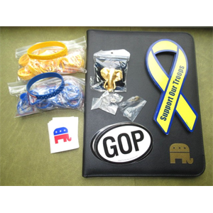 Great assortment of brand new political/patriotic items for group, gift or self-use. This package includes the below but check our other assorted packages.1- Republican Deluxe Padfolio- Brand new blac